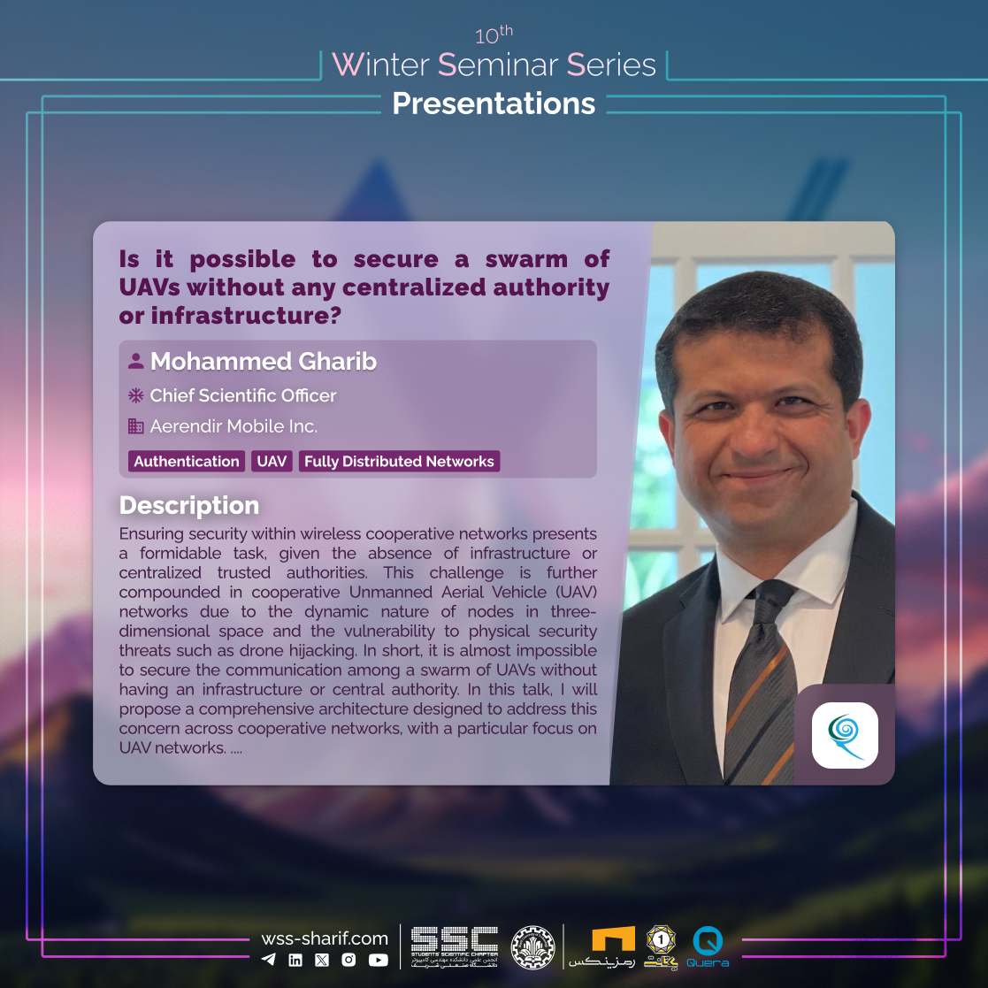 Ensuring security within wireless cooperative networks presents a formidable task, given the absence of infrastructure or centralized trusted authorities. This challenge is further compounded in cooperative Unmanned Aerial Vehicle (UAV) networks due to the dynamic nature of nodes in three-dimensional space and the vulnerability to physical security threats such as drone hijacking. In short, it is almost impossible to secure the communication among a swarm of UAVs without having an infrastructure or central authority. In this talk, I will propose a comprehensive architecture designed to address this concern across cooperative networks, with a particular focus on UAV networks. By delving into specific details, I aim to talk more general to let the audience get more familiar with the topic, and delve into details for those that are really interested in the solution. While the innovation of the topic and solution would be exciting enough for the audience, I will probably further add a surprise for them by representing a novel technology, not very much related to the talk, but extremely innovative, that I am currently work on, in my company. Hope to see you all at 10th WSS.