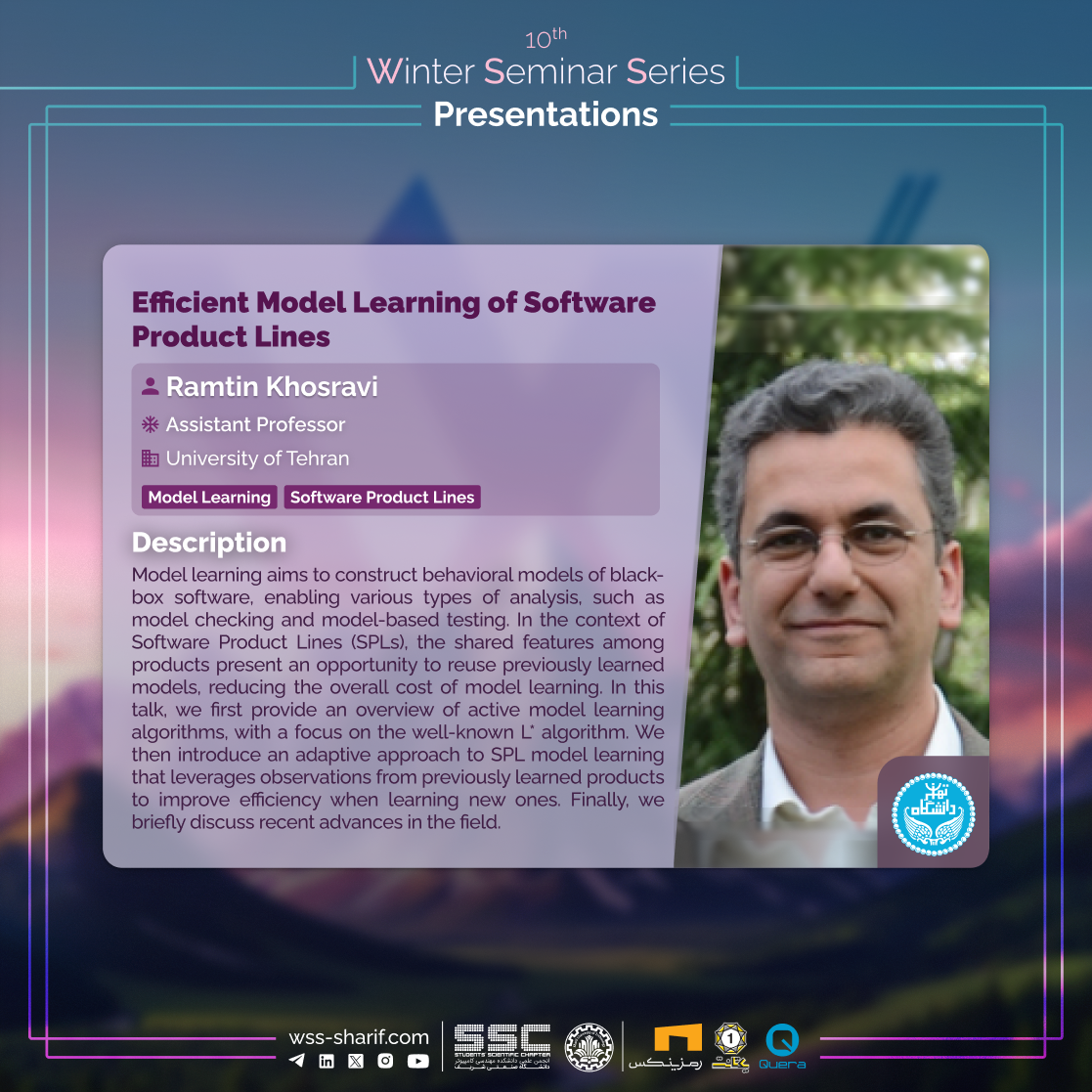Ramtin Khosravi received his Bachelor's, Master's, and Ph.D. in Computer Engineering from the Computer Engineering Department at Sharif University of Technology. Since 2007, he has been a faculty member at the School of Electrical and Computer Engineering, University of Tehran, where he has led the Software Architecture Lab for nearly 15 years. Throughout his career, he has maintained close ties with the software industry, working at various levels as a developer and later as a consultant. His research interests include the application of formal methods in software development. His current work focuses on applying model learning to software product lines and leveraging large language models (LLMs) for architecture-aware code generation.